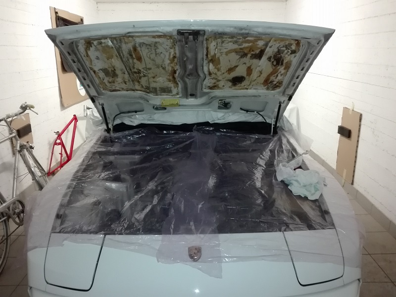 Io l'ho fatto sul mio 944 Però ho solo pulito superficialmente, in modo da preparare la superficie alla colla del pannello anticalore che ho installato Secondo me non serve portare via tutto il rimasuglio se poi ci vai ad incollare sopra nuovamente qualcosa E ti sconsiglio di usare l'auto senza la protezione calore cofano. Rischi danni alla vernice esterna…. |
