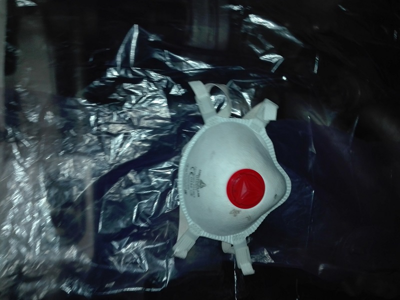 Munito di mascherina (il prodotto è molto volatile e irritante) e di ventilatore portatile per muovere l'aria nella zona di lavoro