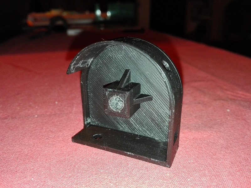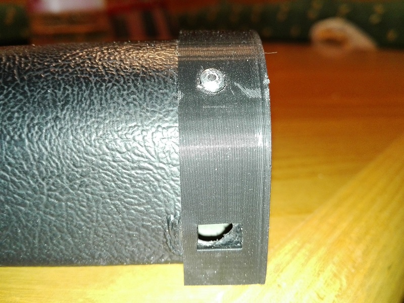 e dalla sua controparte fissa (il tubo dove sta il tendalino) ho realizzato un modello CAD (su un freecad on line abbastanza evoluto ma imparabile in fretta) che poi ho passato a un collega che ha la stampante 3D. Il difficile è stato posizionare i fori ma, dopo un paio di tentativi, sono riuscito a centrarli con abbastanza precisione da riuscire a infilare i rivetti. Il risultato è questo
