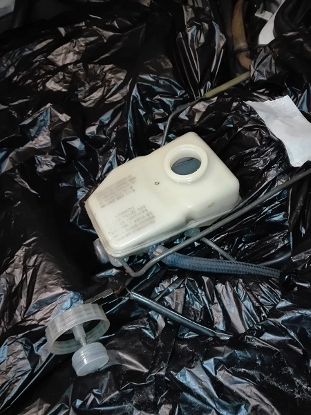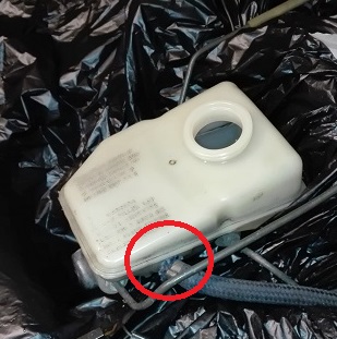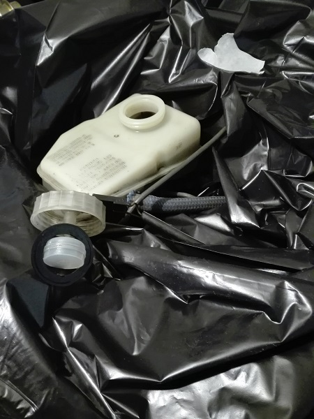 Procedete alla rimozione della vaschetta. E' su a pressione, la forza che dovrete applicare per rimuoverla dipenderà dallo stato dei gommini di tenuta presenti. Nel mio caso, ho dovuto applicare una discreta forza. NOTA: volevo staccare il tubetto che porta liquido al circuito della frizione ma era fissato da una fascetta particolare