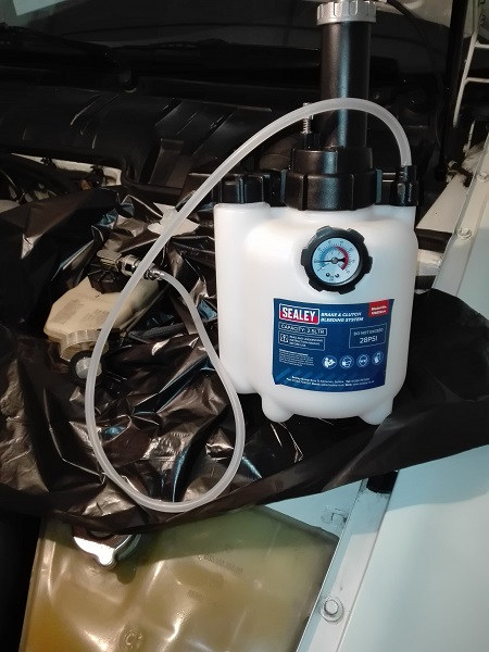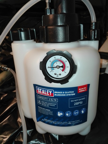 Ciao, da qualche tempo mi capitava, raramente e non sempre, di trovare qualche goccia di liquido freni a terra. Verificando vaschetta, cilindro maestro e attacchi non si notava nulla fin quando ho deciso di procedere con la sostituzione del liquido freni. Non avendo un aiutante, per poter procedere da solo, mi sono dovuto munire di un dispositivo che mette in pressione l'impianto e manda olio continuamente. Durante le operazioni mi sono trovato con un "laghetto" di olio nel cellophane che avevo messo a protezione della zona. Di fatto le guarnizioni di tenuta tra vaschetta e cilindo maestro lasciavano trafilare un po' di olio. Mi sono quindi procurato i pezzi e ho proceduto alla sostituzione, allo spurgo del circuito freni del circuito frizione. Disclaimer: questo scritto descrive come ho eseguito il lavoro sulla mia macchina. Non mi assumo la responsabilità di danni derivanti dall'esecuzione delle operazioni descritte sui propri veicoli. ATTREZZI E MATERIALI DI LAVORO NECESSARI Bussola da 19 mm Chiave dinamometrica per coppie alte (per smontaggio e rimontaggio delle ruote) Chiave ad anello 7 mm Chiave ad anello 8mm Bussola alta da 7 mm Tubetto trasparente in silicone (6 mm diametro interno) Cellophane Carta Siringa da 20 cc (almeno) Contenitore in plastica Dispositivo di spurgo freni (maialino) Olio freni DOT 4 (1,5 litri) Brake cleaner WD40 TEMPO RICHIESTO: 4 ore DIFFICOLTA': semplice + PARTI NECESSARIE Gommini (P/N OEM 911 355 922 00) Costo 6€ la coppia COSTO Costo dei gommini 6€ Bleeder 72€ su amazon Tubetto 1€ al metro Siringa 0,5€ Contenitore e imbuto: 2€ Olio freni: 1,5 litri 13€ TOTALE: 94€ VEICOLI DI PERTINENZA PER LA PROCEDURA: tutte. Possono cambiare le dimensioni delle valvole di spurgo sulle pinze e per le S2 e le 968, che hanno due valvole per pinza, sarà necessario spurgare entrambe. ESECUZIONE Assemblato il "maialino"