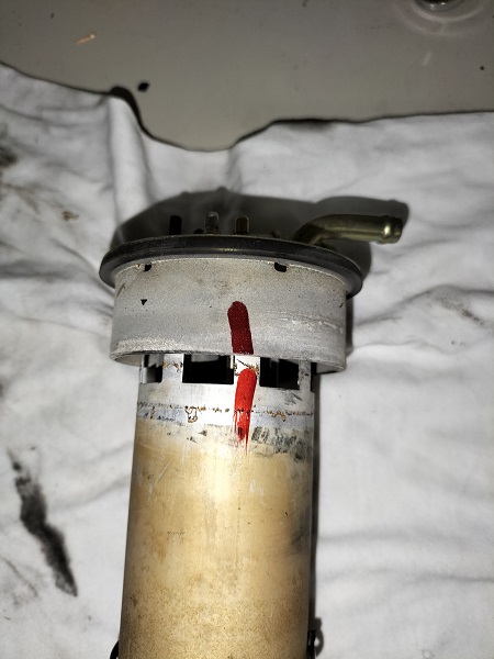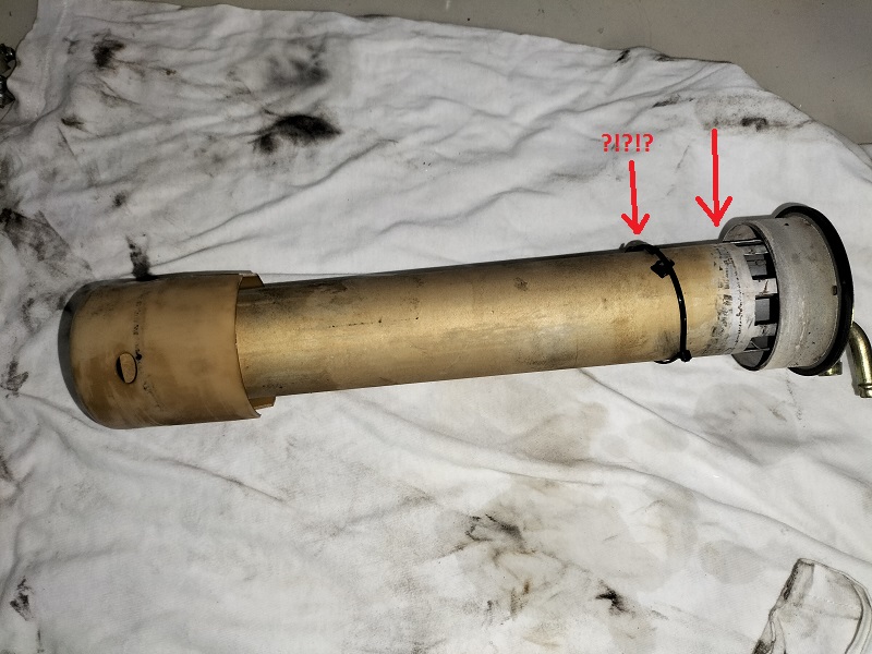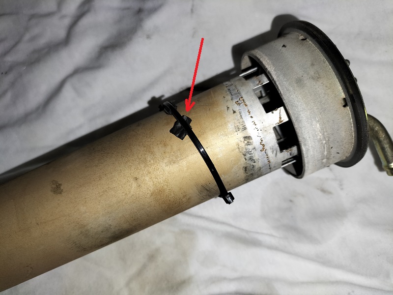 e rimontate la base, in modo che l'invito evidenziato in precedenza entri nella sua sede (evidenziata nella foto precedente). Serrate il dado a mano. A questo punto si potrebbe verificare la taratura del galleggiante, misurando la resistenza in uscita: PIENO: 2,8 Ohm VUOTO: 63,2 Ohm Da "furbo" mi sono scordato di farlo Inserite il connettore e accendete il quadro per verificare se, inclinando il galleggiante da una parte e dall'altra, lo strumento funziona. Per rimontare il galleggiante nella sua sede, procedere come segue: * mettere un velo di grasso siliconico adatto alla gomma e agli o-ring sul bordo della guarnizione * rimuovere l'alluminio messo a protezione dei tubi e del serbatoio * inserire il galleggiante nella sua sede: attenzione deve entrare in modo corretto, altrimenti tocca il fondo del serbatoio e non si posiziona correttamente * posizionare la ghiera e iniziare ad avvitarla tenendo leggermente sollevato il galleggiante. Non serratela subito ma fate in modo che il galleggiante possa ruotare un poco nella sua sede * aprire le fascette e posizionarle sui rispettivi tubi * calzare i tubi aiutandosi facendo ruotare leggermente il galleggiante * serrare e fascette * serrare la ghiera C'è chi ha cervello e chi ha la testa disabilitata.