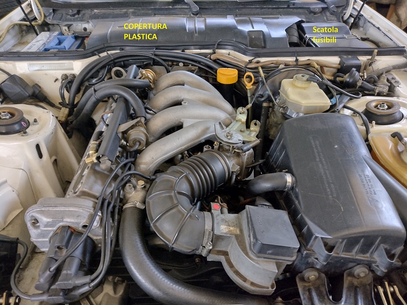 I pistoni anteriori, se prendi Stabilus, sono praticamente gli originali. Li ho su da quasi 9 anni e vanno ancora bene. La ruggine nella chiusura baule va pulita e poi fatta vedere a un carrozziere per sistemarla per bene. Darei una bella occhiata sotto alla guarnizione e ai pannelli dietro e sotto alle moquette del baule. Domanda: ma la macchina, sotto l'hai guardata o fatta vedere? Vano batteria: non mi sembra messo malissimo. Sembra che sia tutta ossidazione superficiale. Una bella pulita e una passata di vernice dovrebbero risolvere. Osservando la foto del vano motore: 1) manca una paratia di plastica al centro, vicino alla base del parabrezza 2) più importante: dov'è la scatola fusibili????? Ti allego un'immagine del vano motore della mia