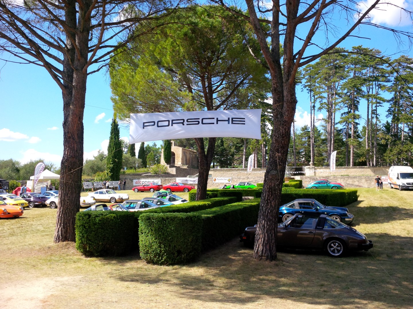 Si parte per un'altra "balade" stavolta di 85 km sempre con road-book. Il percorso tocca angoli molto suggestivi attraverso la foresta del Luberon, per arrivare alla fine al castello di Ansouis gentilmente messo a disposizione da un privato, il cui grande parco viene letteralmente riempito di Porsche. A contorno del raduno si è tenuto anche un simpatico concorso d'eleganza, dove accanto alle vetture veniva premiato anche l'equipaggio in tenuta d'epoca... La protagonista quest'anno era il modello Targa a 50 anni dalla presentazione e parecchie 911 in questa configurazione erano presenti all'evento. Dopo una lotta impari, in cui i francesi logicamente la giocavano da padrone e i commissari che spulciavano ogni angolo della nostra 914, ci siamo classificati al SECONDO posto, ottenendo una bella targa commemorativa e un paio di occhiali Porsche...ma più di tutto catturando la simpatia dei presenti: Chiudo il reportage con uno scorcio romantico un arcobaleno che ci ha accompagnato per la gran parte della salita al col de Larche... Lasciamo la Douce France con l'augurio di poter ripetere la bella esperienza magari insieme a qualche "Novecentoquattordicista" italiano! "Quando un italiano vede passare un'auto di lusso, il suo primo desiderio non è di averne una anche lui, ma di tagliarle le gomme" - Indro Montanelli (1909-2001)