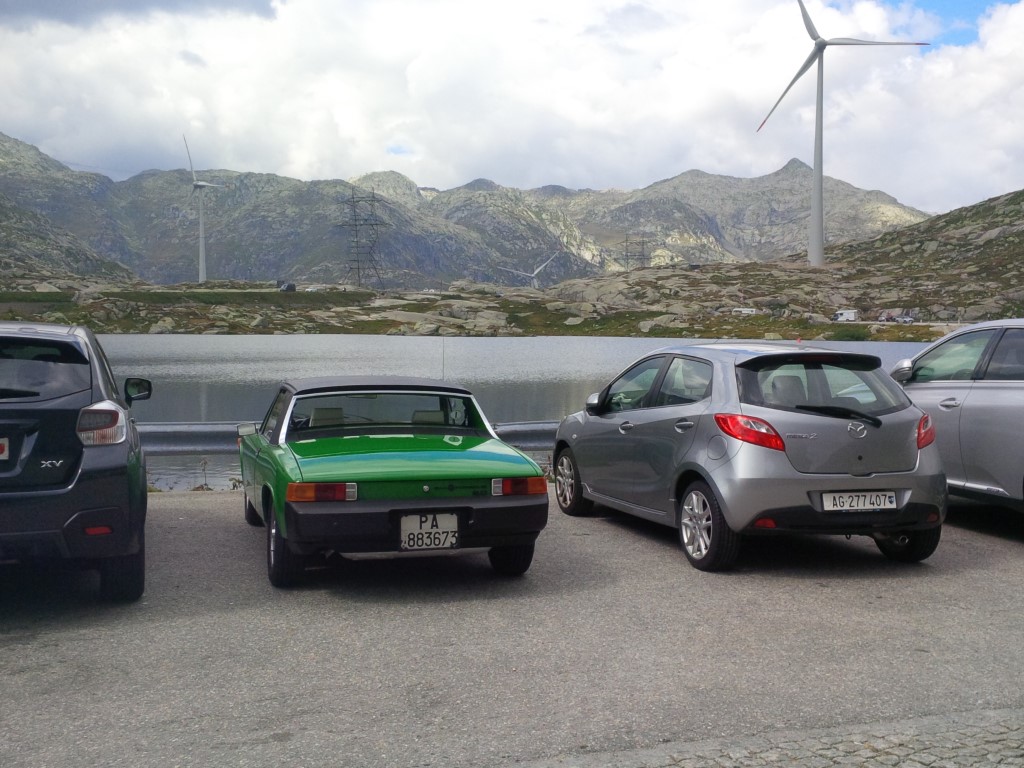 Ripartiamo alla volta del Vierwaldstättersee, Lucerna e via discorrendo... peccato che tra lavori e la fiumana di olandesi, tedeschi, inglesi eccetera, restiamo imbottigliati nella Svizzera centrale quasi fino a sera... Arriviamo stanchissimi a destinazione dopo ben 8 ore di viaggio, un tempo infinito se pensiamo che in totale sono circa 382 km... All'hotel sono già schierate le altre 914 a cui ci aggreghiamo. L'intruso in alto a sx è la 993 cabrio di Olivier, che ha la 914 in riparazione...