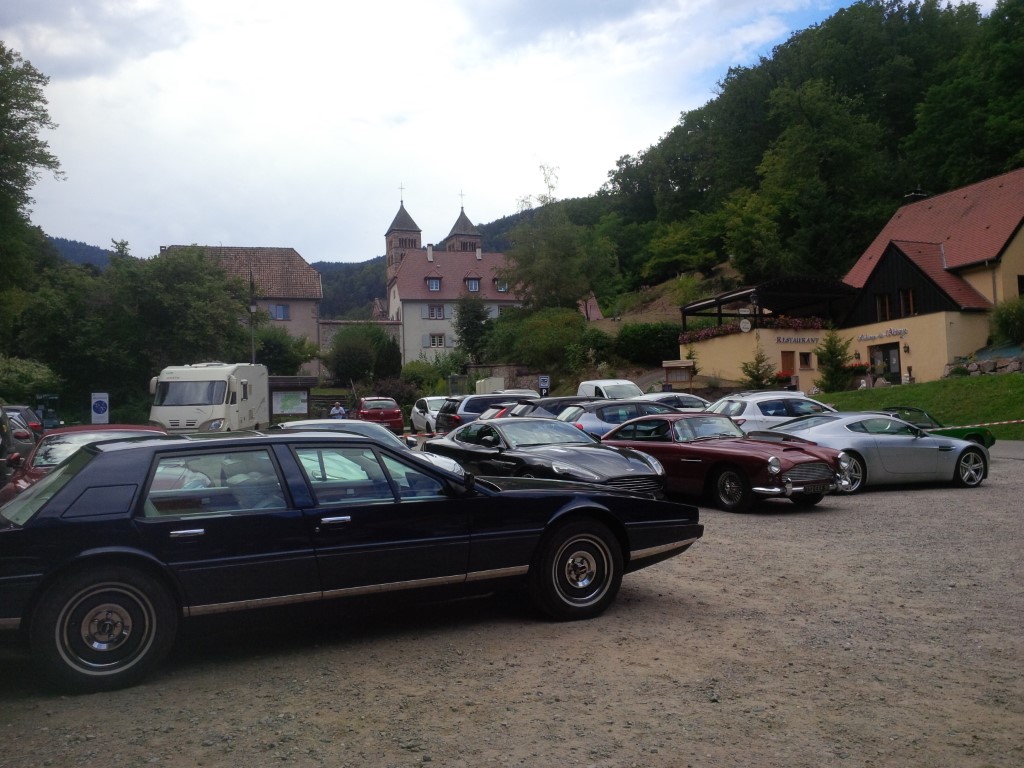 Ben 26 Aston Martin che partecipano al "Rallye en Alsace" organizzato dal AMOC francese... stupenda la Lagonda fotografata in primo piano non è immediato vederne una, tantopiù in un abbinamento di colori davvero inusuale. Eccoci infine all'Ecomusée... si tratta di un villaggio tradizionale alsaziano, ricostruito prelevando, SMONTANDO E RIMONTANDO delle abitazioni tradizionali di origine medievale, prese in diversi paesi dell'Alsazia. Che so, la casa del fattore, la scuola, la segheria eccetera... perfettamente ricostruite ma...ORIGINALI!