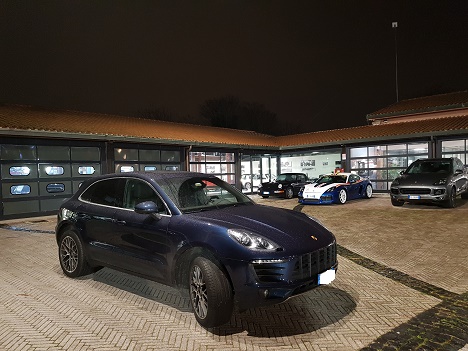 Venerdì sera l'ho lasciata al CP Roma...l'ho tenuta poco (appena poco più di un anno e circa 7 mila km percorsi) ma devo dire che mi è piaciuta molto...peccato che la configurazione non si sposasse esattamente con quanto piaceva a me ma, diciamo, che quando la cercavo era la migliore che avessi trovato, secondo i miei gusti, nel circuito Porsche ufficiale...il colore blu notte è risultato molto bello dal vivo (meno nel configuratore, dove non è per niente veritiero) tanto che mi è rimasto un residuo dubbio se riprenderla di questo colore invece del pur bellissimo nero jet o del grigio vulcano... Vi posto qualche foto dell'addio, sotto una triste pioggerella tardo autunnale...