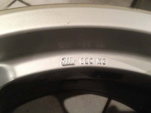Ho acquistato dei cerchi CUP da 17" da 7,5x17 ET 52 e da 9x17 ET 47 da montare sulla 964 RS. All'interno hanno punzonato, oltre alla misura e all'ET, "made in Italy". Nel bordo esterno vi è il peso e una sigla (cosa significa tale sigla?) che potete vedere nelle foto che allego sotto.