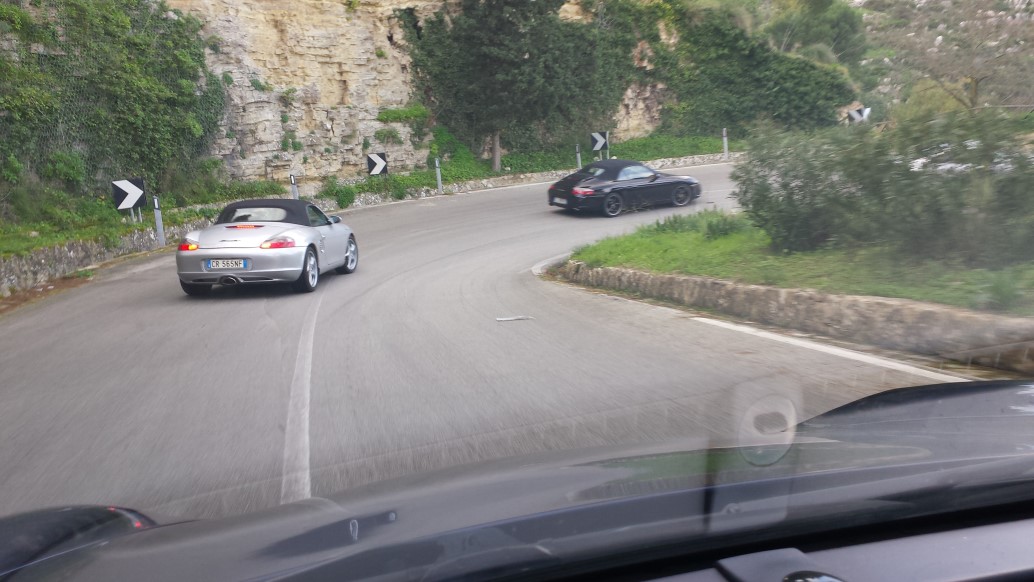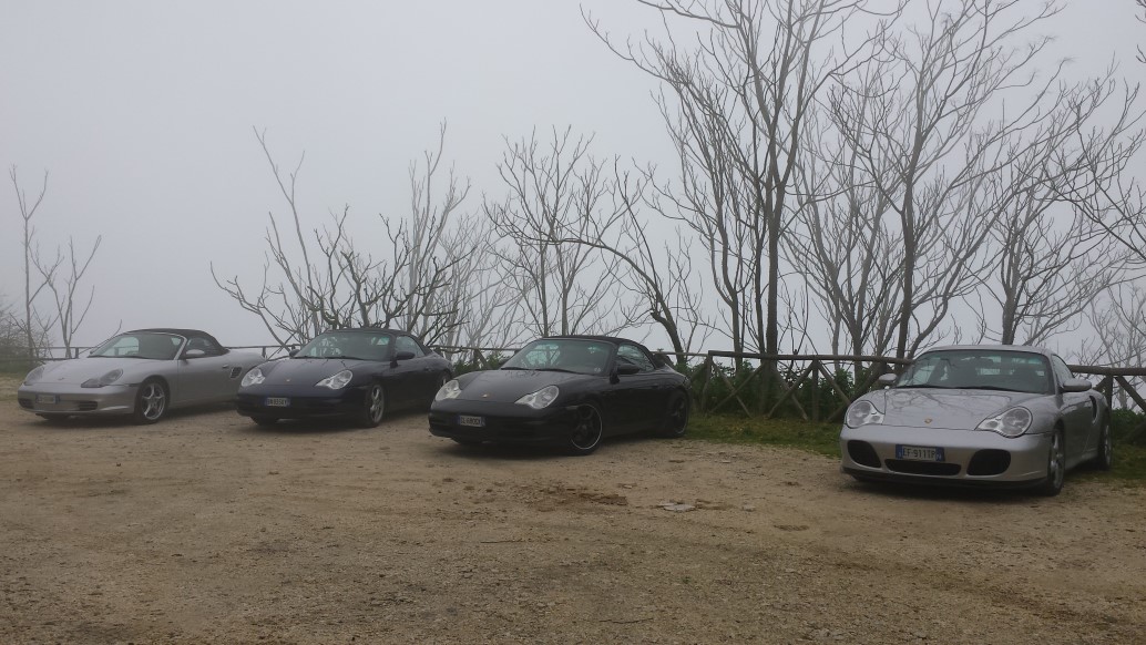 Ciao a tutti, dopo aver acquistato la boxster per il mio amico Antonio (cfr. oggi ho comprato una boxster ma......), ieri sera dopo queste gran mangiate natalizie, complice il bel tempo, avevamo pensato di "sbagnare" l'auto facendo un giretto insieme...... anche alle nostre consorti per farle conoscere,ed avviare così un percorso di crescita porschemaniaca per il nuovo arrivato. Ovviamente il tutto doveva essere completato da altri Porschemaniaci calorosi che poco scrivono ma che a concedere ospitalità e sostegno non sono secondi a nessuno, quali Ezio e Beppe. Nel giro di 15 minuti, tra whatsup e telefonate, si fissa appuntamento per le 10:00 di stamane con obiettivo primario - per la prima volta in Sicilia - non il pranzo luculliano, ma un bel giro per non si sa dove. Il percorso deve essere il meno possibile autostradale e considerato che 3 su 4 sono Porsche cabrio e che l'amico Antonio vuole godere del sole e del venticello, come in moto, decidiamo di raggiungere Castellamare del Golfo per poi scalare il Monte Erice, famoso sia per la cronoscalata che per la panoramicità che offre. Qualunque purchè sia una PORSCHE, perchè se un'auto potesse sognare, sognerebbe di essere una PORSCHE.