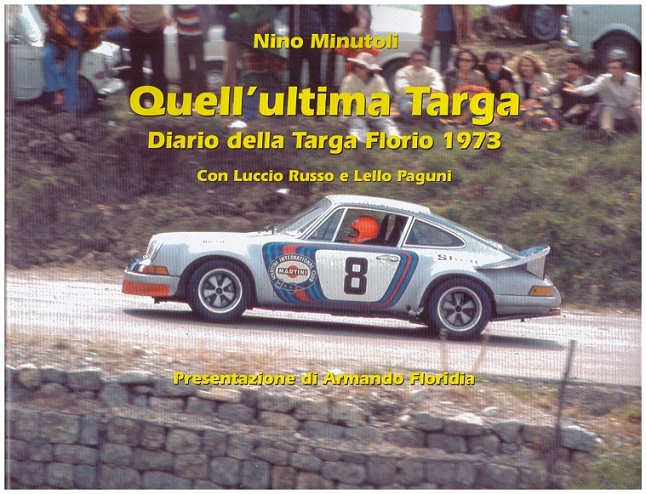 'Anno 1973, la fine di un’era, quella della Targa Florio, la grande corsa su strada voluta da Vincenzo Florio dopo aver visto il gran premio di Francia, essersi entusiasmato per quei bolidi che solcavano a grande velocità le strade francesi ed aver pensato che una grande corsa sulle strade della sua Sicilia avrebbe portato l’isola ad una notorietà internazionale. La grande corsa siciliana ha ben 73 anni di storia e con l’edizione del 1973 si sta avviando ad un triste declino. Le grandi gare su strada fanno tutte parte del passato, come la Carrera Panamericana, la Mille Miglia, il circuito del Mugello, ha resistito solo la creatura di Vincenzo Florio, ma è diventata anacronistica e pericolosa con le nuove vetture sport-prototipo, sempre più veloci e performanti, poco adatte alle strette strade delle Madonie. Il destino è segnato, l’edizione ’73 sarà anche l’ultima inserita nel Campionato del Mondo Marche dove Ferrari, Matra, Alfa Romeo, Mirage-Ford e Porsche stanno disputando le corse. Mirage e Matra infatti non scendono in Sicilia, reputano le strade troppo strette e pericolose per le loro vetture, rimangono le vetture italiane: Ferrari e Alfa Romeo a disputarsi la gara. Con loro ci sono anche la Lancia e la Porsche da sempre legata alla terra siciliana. Muller e Van Lennep con la Carrera RSR transitano per primi sotto il traguardo della 57° Targa Florio in 6h54’19 alla media di 114’691 km/h, li seguono Munari-Andruet con la Lancia Stratos a poco meno di 6 minuti, terzi Kinnunen – Haldi su Porsche. È la prima vittoria assoluta della 911 Carrera. Già giorni prima della gara circolava voce che questa sarebbe stata l’ultima Targa Mondiale, infatti la commissione sportiva internazionale fu irremovibile, non concedendo più per l’anno successivo la validità per il Mondiale Marche. Troppa gente, difficilmente controllabile ai margini della strada, troppo pericoloso il circuito senza adeguate protezioni per i sempre più potenti Prototipi. Sarebbe stato anacronistico continuare a correre in quelle condizioni in quelle strade di rischio per piloti e spettatori'. Con questo contributo, l'autore, Nino Minutoli, ci regala un prezioso resoconto di quell'ultima Targa Florio. Con una originale documentazione fotografica ogni partecipante è rappresentato e descritto, così come le statistiche della gara sono esaurientemente fornite. Proportio hominis ad hominem Tessera 1341 - Cofondatore del gruppo i "Magna Greci"