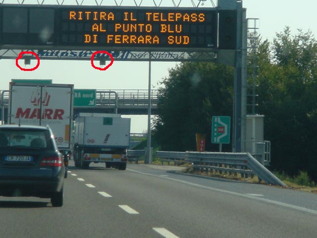 Ho potuto verificare l'installazione sulla A14 nei pannelli informatori a Forlì e Cesena in entrambe le direzioni: non ho però capito se riprendono tutte le auto che passano o solo quelle che transitano oltre il limite. |