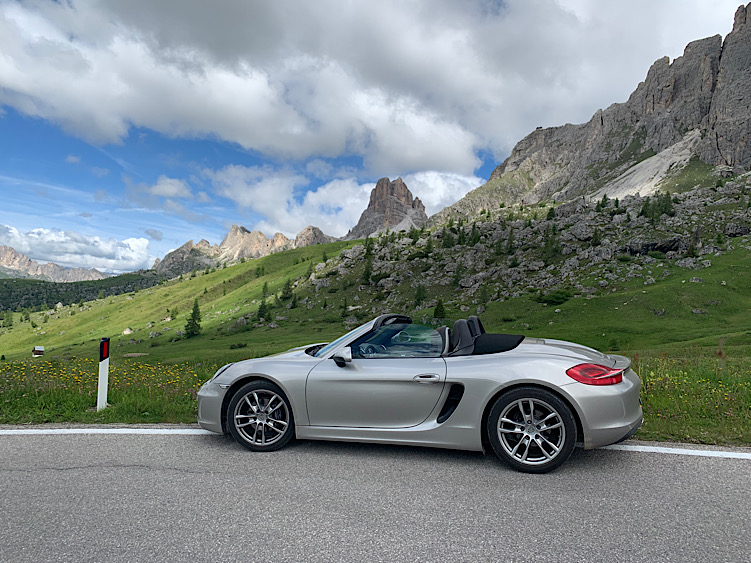 Grazie a tutti per la calorosa accoglienza! Condivido una ultima foto della Boxster nel suo habitat naturale dei passi dolomitici. Capote giù, cambio in manuale, tasto sport e scarico aperto... la configurazione perfetta del piacere di guida su strada. Adesso dorme in garage sotto un telo e attaccata al mantenitore di carica, ma non vedo l’ora sia primavera per tirarla fuori.